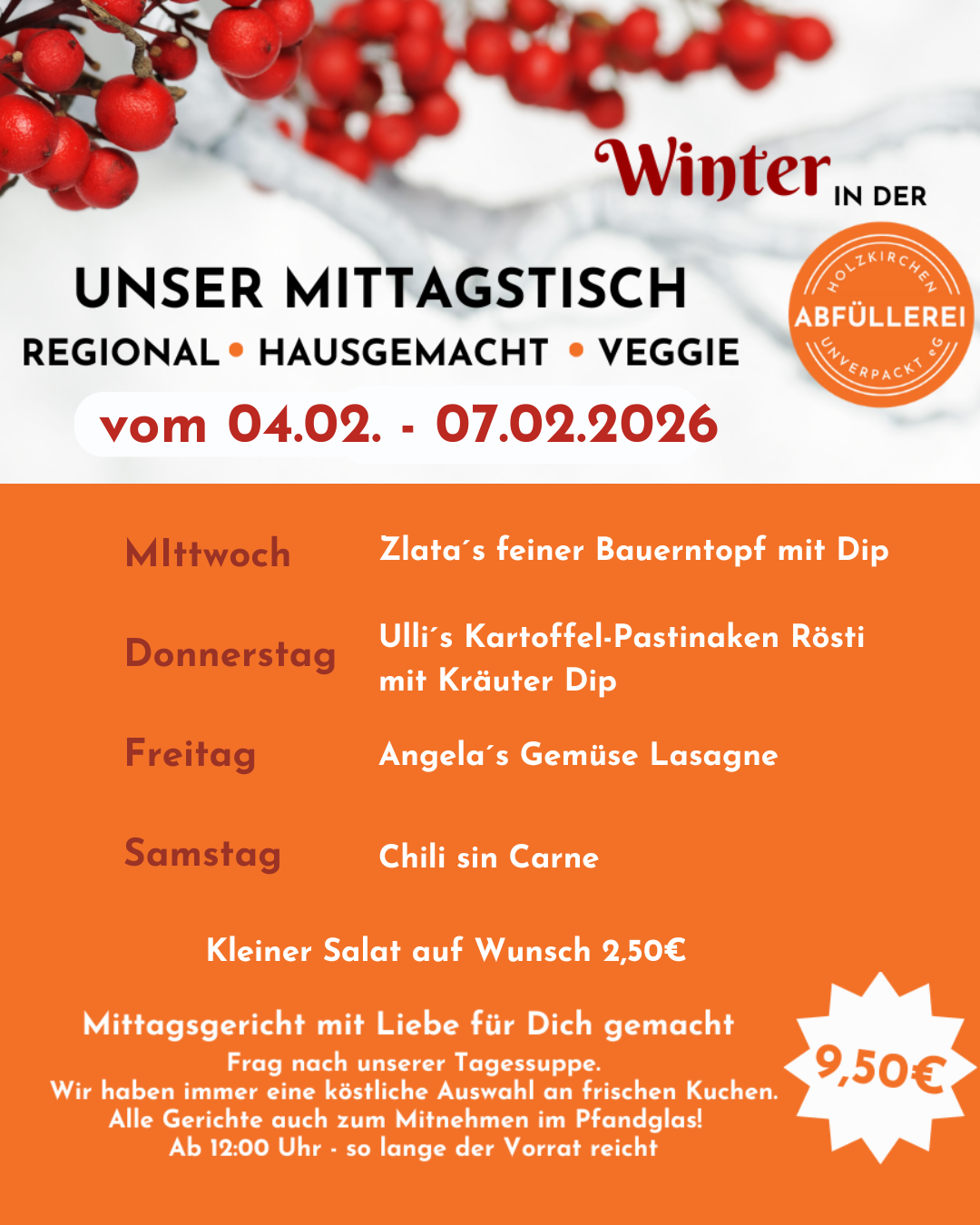 Unser Mittagsangebot ist jetzt verfügbar.